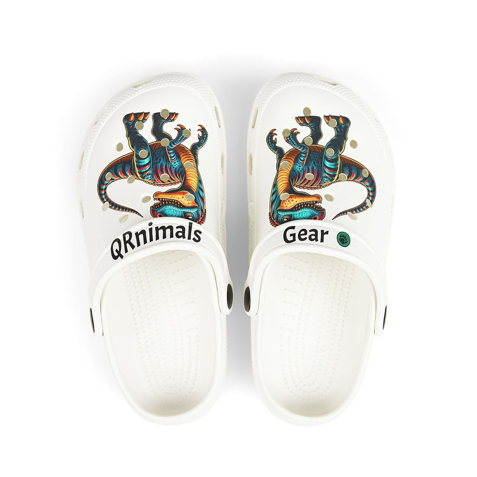 These garments are perfect for dinosaur enthusiasts who love to share their excitement about these creatures. The garment displays a popular dinosaur on the front and a QR code on the back. The QR code leads to a fun fact-filled page about the type of dinosaur pictured on the front of the shirt.